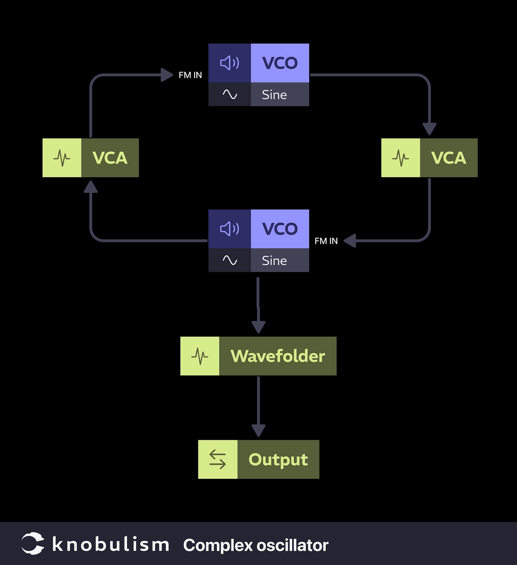 The DPO is a dual oscillator with complex FM capabilities. This patch gives you simpler version of the DPO but it is a great way to understand the basics of what is happening under the panel of complex oscillators.