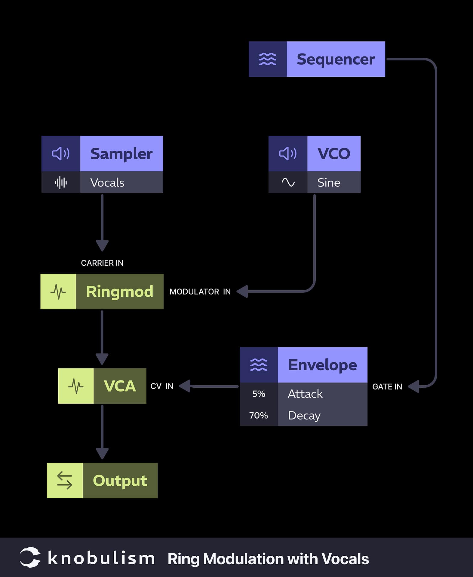 - A ring modulator module: Various modules are designed for this task (we’ll dive into them later).