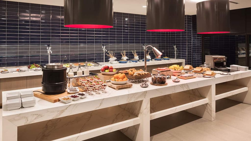 Fuel up before hitting the exhibition floor. The hotel buffet is exactly what you’d expect from a Hyatt in Schaumburg: milky eggs, greasy bacon and puffy bagels. Still, it’s a chance to randomly sit with someone alone and spark a great modular chat. Better yet, grab a crew and take the 10–15 minute walk to Wildberry or First Watch. Both serve a breakfast actually worth eating.