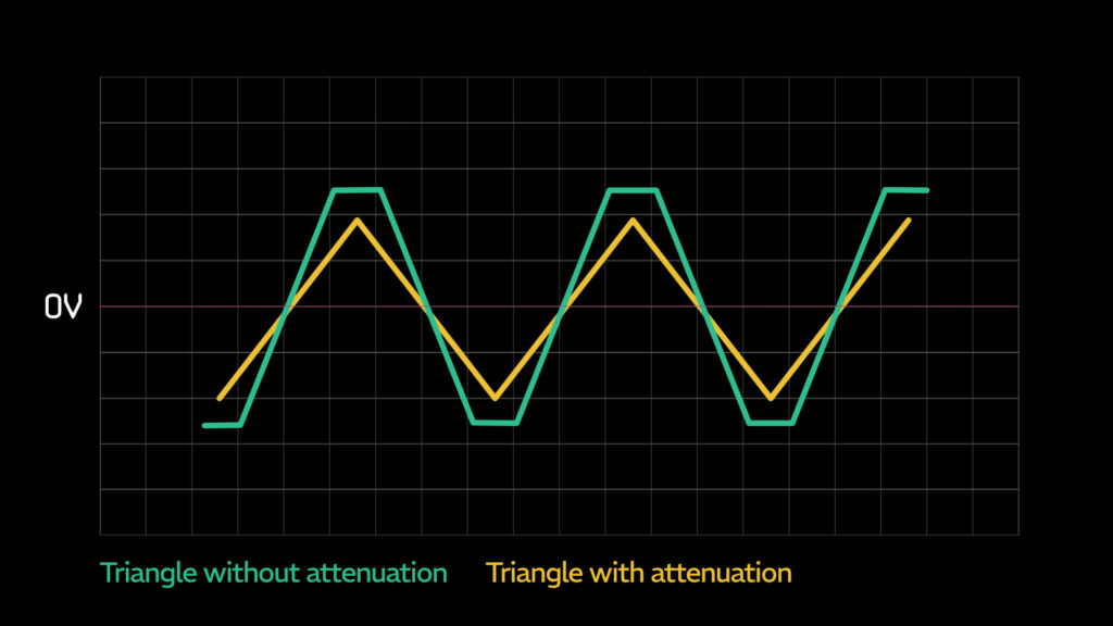 Did you know that many oscillators output at levels that can clip or overdrive filter inputs? That’s right, the saw wave you’re sending into your filter might have its top and bottom chopped off due to overdriving. While this can be a desirable effect for adding distortion, there are times when you might want to filter the source without distortion. If your filter lacks a level control on the input, you can use an attenuator to reduce the input source’s amplitude.