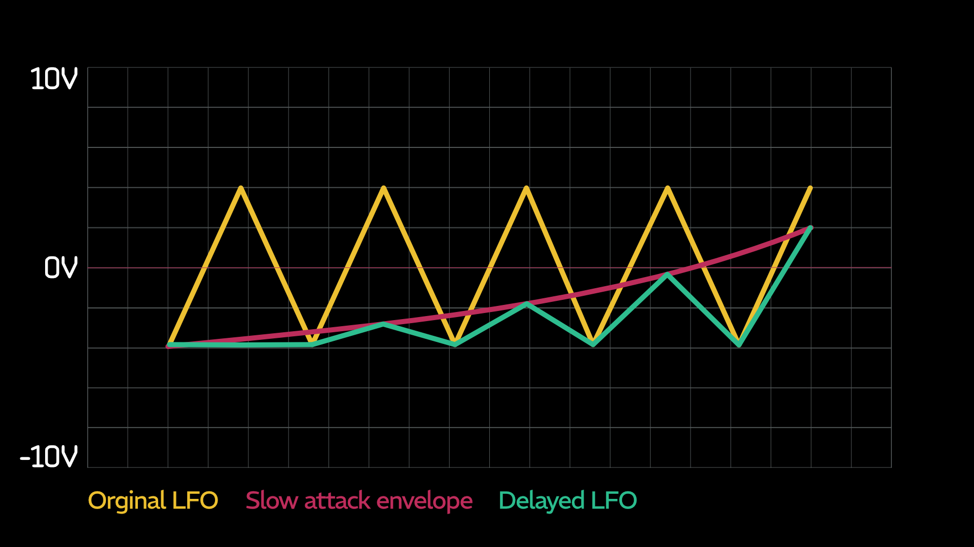 Got a vibrato patch you love but don’t want it to last the entire note? Start the sound smooth and steady, then gradually increase vibrato towards the end by modulating the LFO amplitude with an envelope through a VCA.