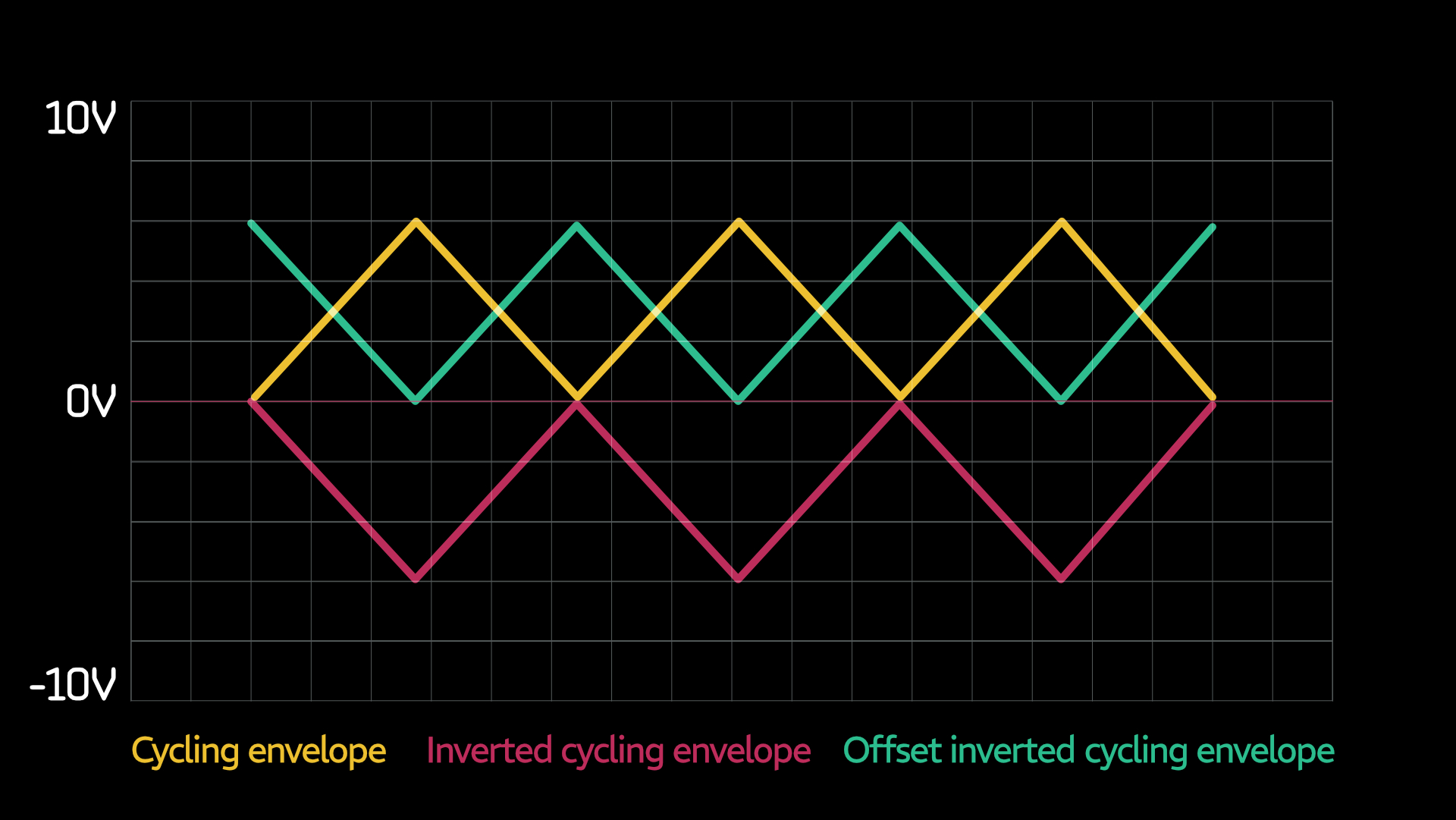 Below is a chart that illustrates why an offset is required for the inverted signal. You can clearly see the inverted envelope is fully below 0V. The majority of standard VCAs do not accept bi-polar CV signals, therefore, that red line will do nothing until it is offset.