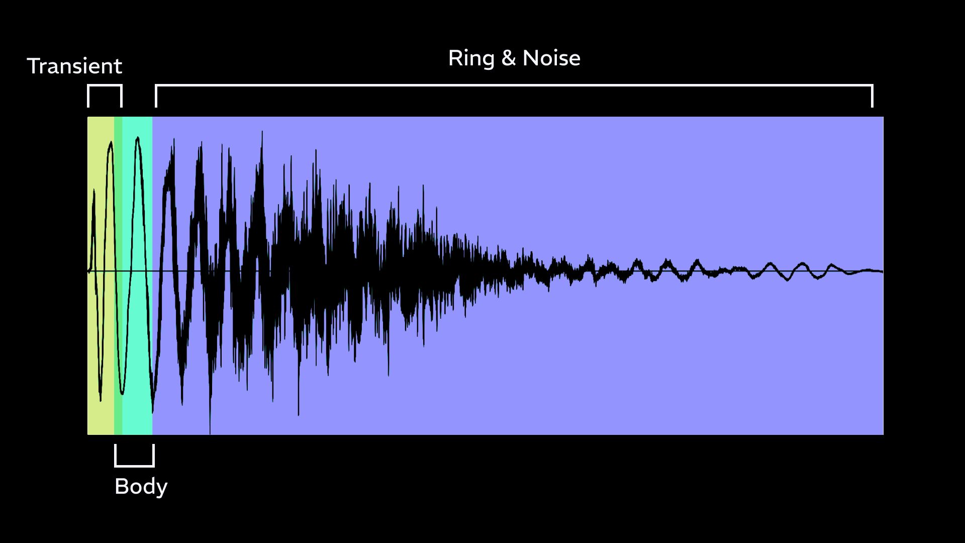 - Transient: The first 1-6 milliseconds, the initial crack of the drumstick hitting the batter head.