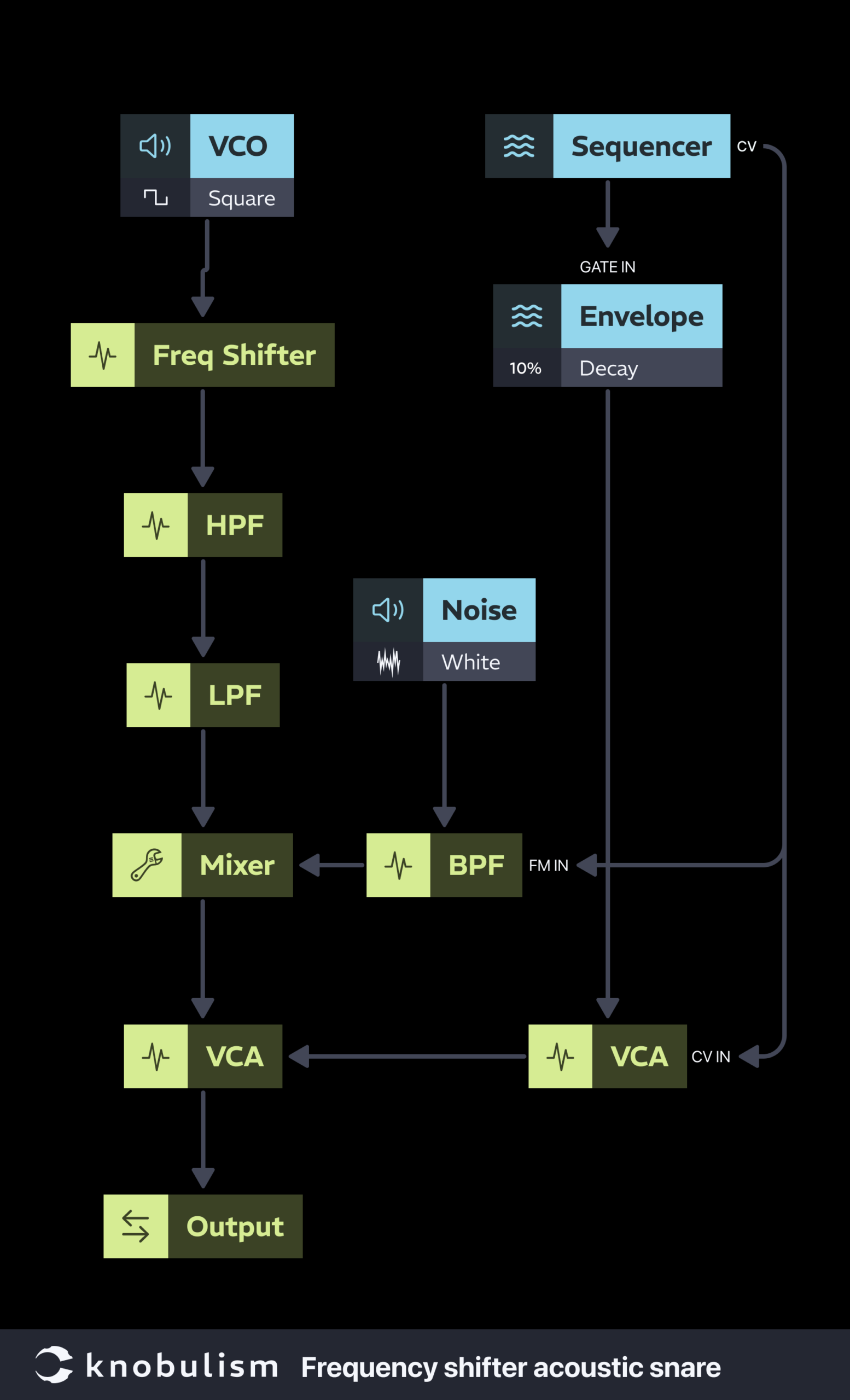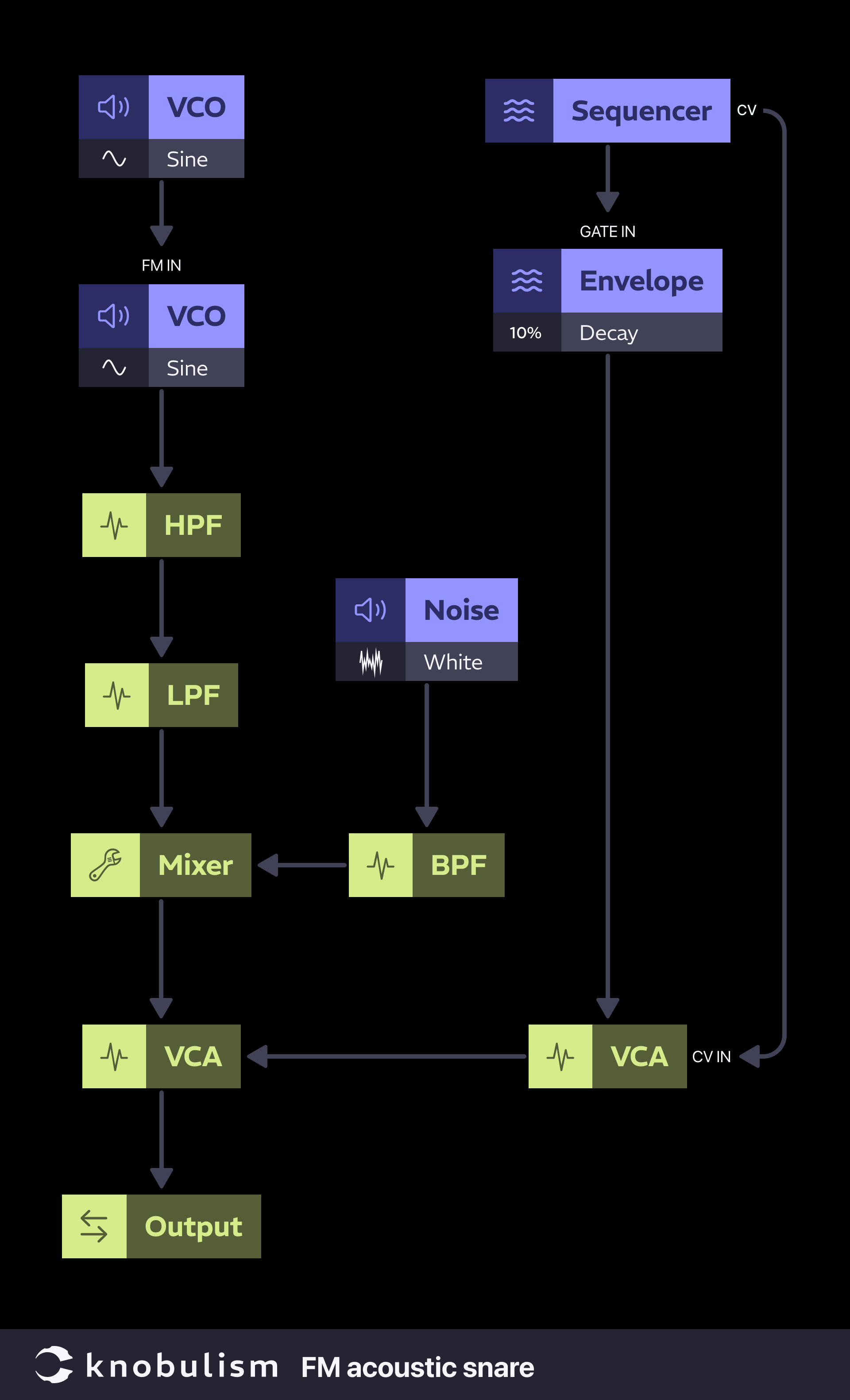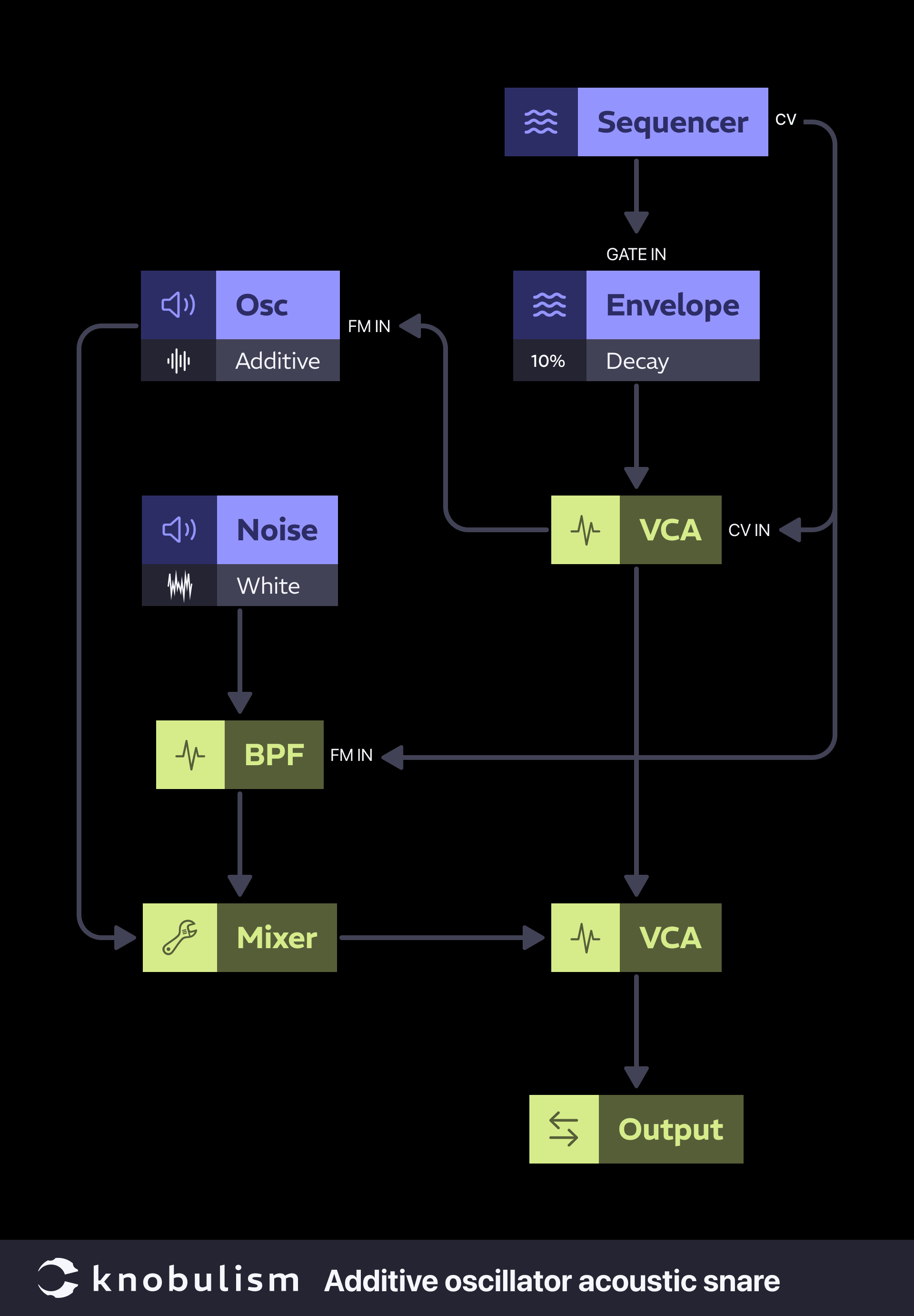A few days ago, I was scrolling through YouTube and stumbled upon a video titled kind of like, “Synthesize Real Snare Sounds using the Power of Feedback.” Naturally, I was curious. But as I watched, it became clear that the approach was way more complicated than necessary. Plus, there was a fair bit of misinformation driven by a lack of understanding. While I resisted the urge to jump into the comments and play Patch Police, it did inspire me to write this article.