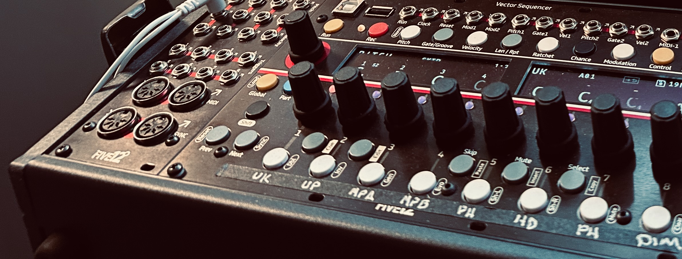Next, I got down to the nitty-gritty of creating around 250 pattern presets on the Five12 Vector Sequencer MKII. The sequences span about eight voices that can be loosely categorized as kick, snare, percussion, hi-hats, bass, lead, harmony, and pads. Each sound was meticulously designed to sit in its own, mostly isolated frequency range. I added polish by dialing in articulation for each voice, so successive notes would sound slightly different from previous ones. Doing this also allows me to accent steps manually, creating dynamics based groove.