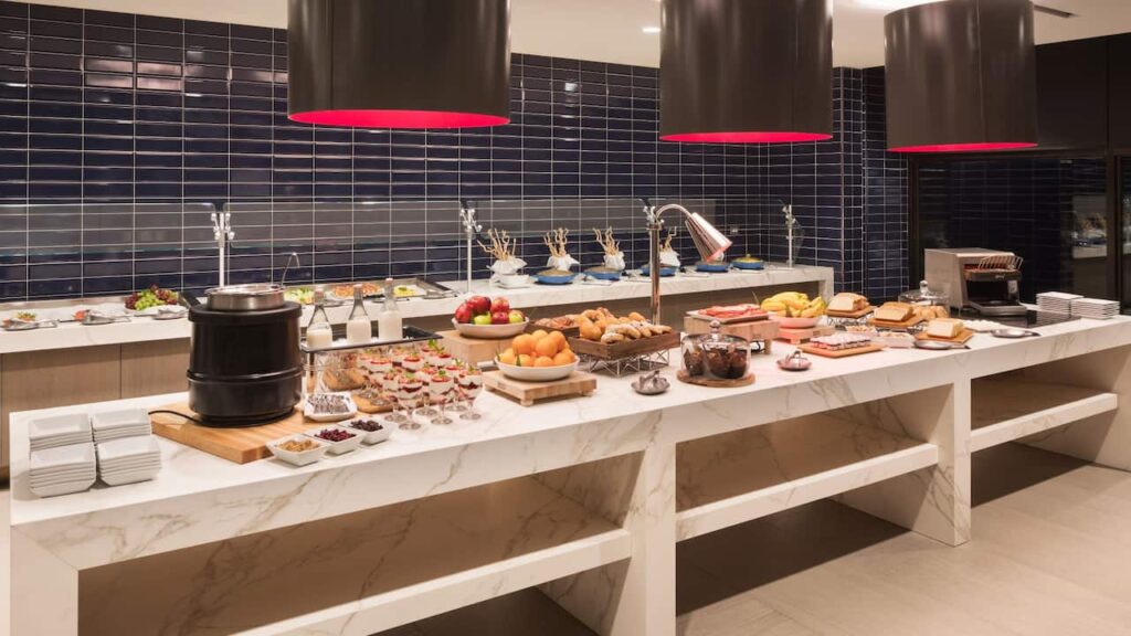 Fuel up before hitting the exhibition floor. The hotel buffet is exactly what you’d expect from a Hyatt in Schaumburg: milky eggs, greasy bacon and puffy bagels. Still, it’s a chance to randomly sit with someone alone and spark a great modular chat. Better yet, grab a crew and take the 10–15 minute walk to Wildberry or First Watch. Both serve a breakfast actually worth eating.
